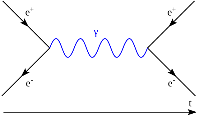 A Feynman diagram showing the annihilation of an electron and a positron (antielectron), creating a photon that later decays into a new electron–positron pair.