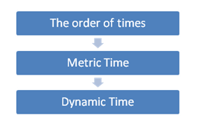 At the first stage, the primordial notion of time in its most abstract form was an ordered set of events wherein for any two events, one can say that one event preceded the other event on the timeline, i.e., the first event was “earlier” than the second event. On the second stage of development, timeline acquires metric geometry, which allows to measure the distance between two events. At this stage we not only can say that event A preceded event B but also buy how long it preceded it. Lastly, in its final stage of evolution, time acquires the property of flow, the time-flux, at which stage we call it dynamic time.