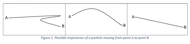 Let us note that, using the least action principle, we can correctly select the trajectory the particle traveled based on the least action value associated with that trajectory. This selection is made ex post facto when we already know the particle’s position (B) at time T2. But how does a particle know where it will end up to choose the right path? Somehow, it immediately embarks on the right path a priori, as if it knew the point of destination—the final cause—which is a distinctly teleological notion.