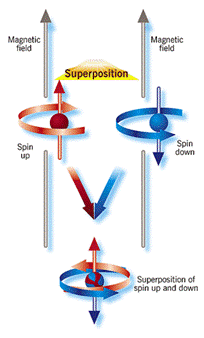 The wave function represents our knowledge of all possible quantum-mechanical states of an object and their probabilities. In other words, the quantum-mechanical state of a physical system is a linear superposition (in its simplest form, linear superposition is a sum) of all possible states of this system. Thus, for example, in state A, an electron can have its spin up (as if the electron was rotating clockwise); in state B, an electron can have its spin down (as if the electron was rotating counterclockwise); and in a state of superposition, the state of electron is a superposition of states A and B, i.e., the spin is up and down at the same time (as if the electron was rotating clockwise and counterclockwise simultaneously)!